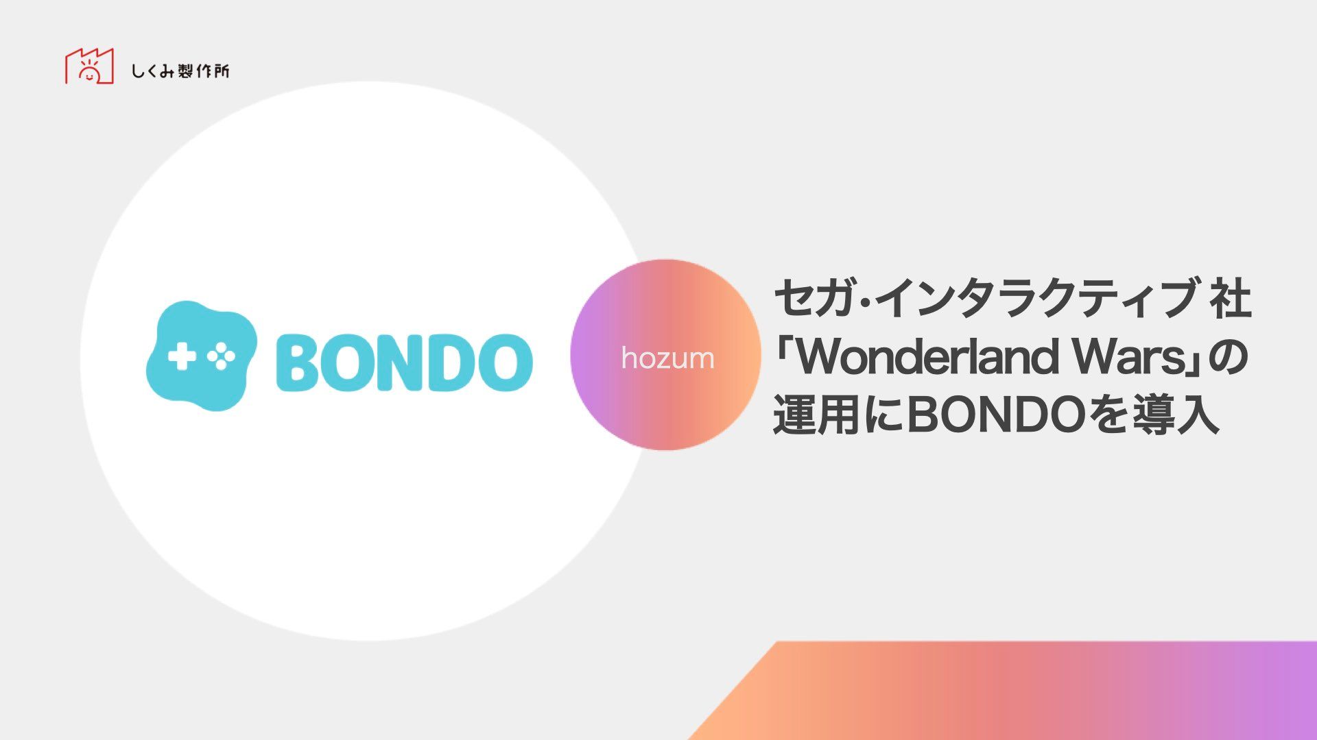 しくみ製作所株式会社(代表:車拓哉)は、株式会社セガ・インタラクティブ(本社:東京都大田区)が運営する「Wonderland Wars」のコミュニティ運営にあたって、BONDO提供を2016年4月25日より開始いたしました。