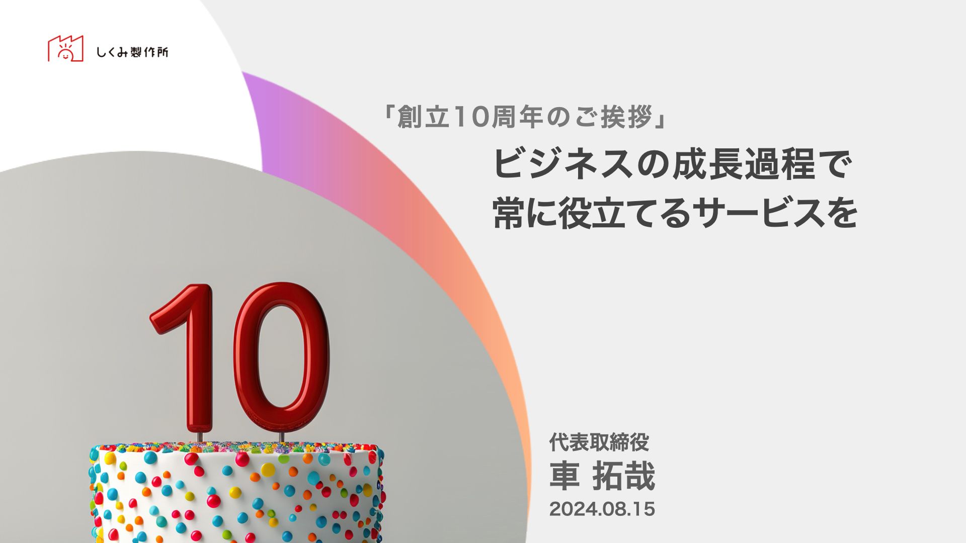 しくみ製作所は、2024年7月末をもって創立10周年を迎えることができました。これまでと特別変わることのない日常ではありますが、8月から11年目のスタートとなりました。
