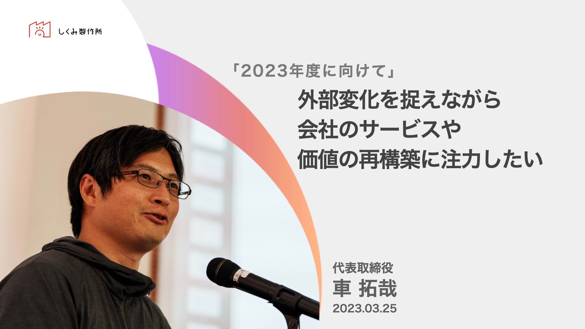 しくみ製作所代表の車より 今月のつぶやき「2023年度に向けて」