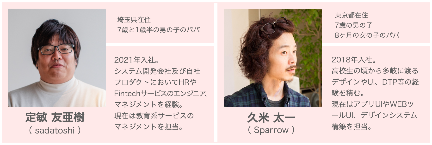 前回、社内投票で好評だった「育児パパ座談会」について、今回はSparrowさん、sadatoshiさんご参加のもと、実践している育児のルールや考え方、しくみ製作所での働き方を語っていただきました。それぞれの家庭のスタイルに触れることで、思わず「へぇ〜!」と感じる場面が多くありました。第2弾となる座談会をお届けします。