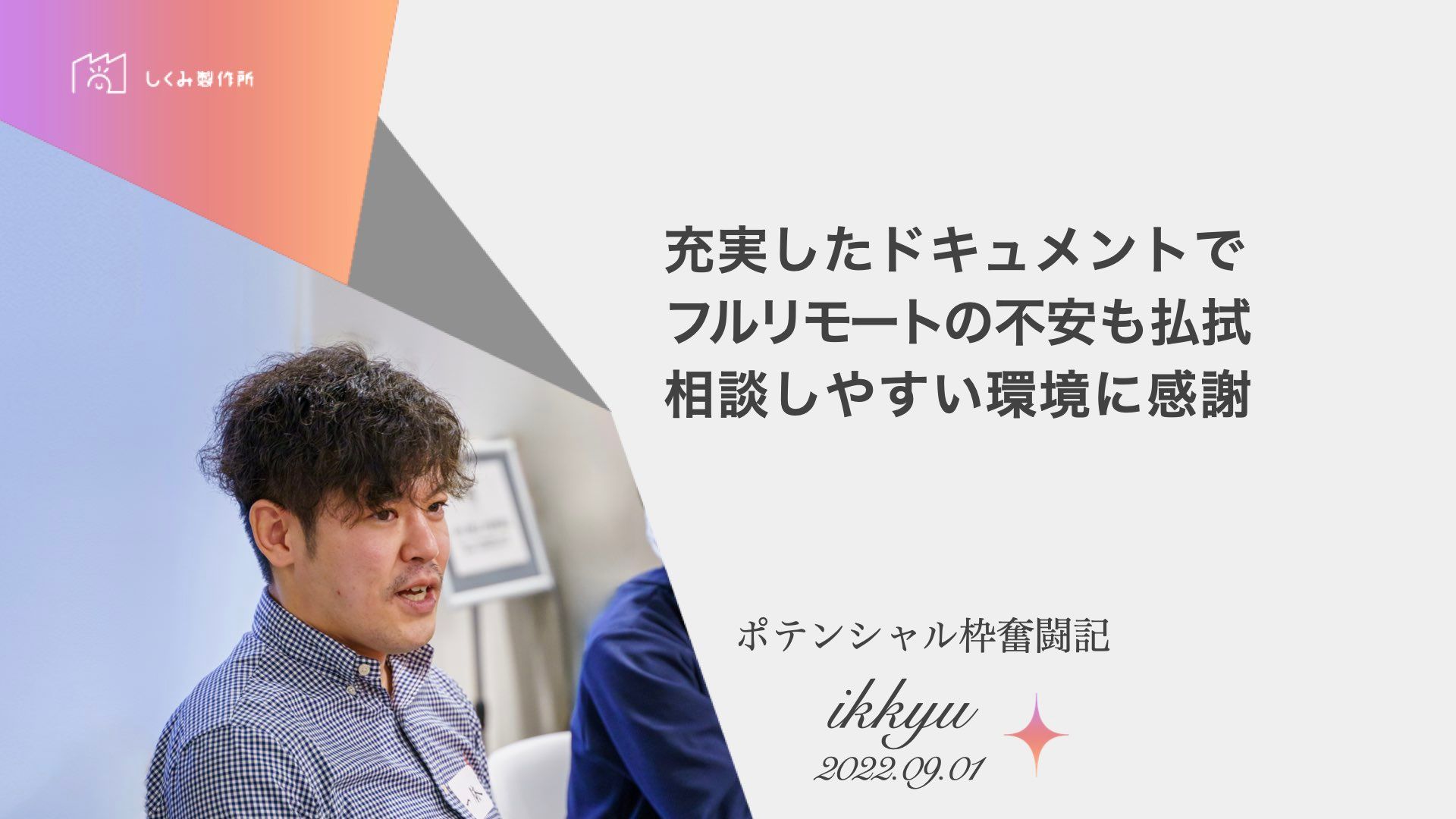 充実したドキュメントでフルリモートの不安も払拭・相談しやすい環境に感謝「ポテンシャル枠奮闘記〜ikkyu編〜」vol.01