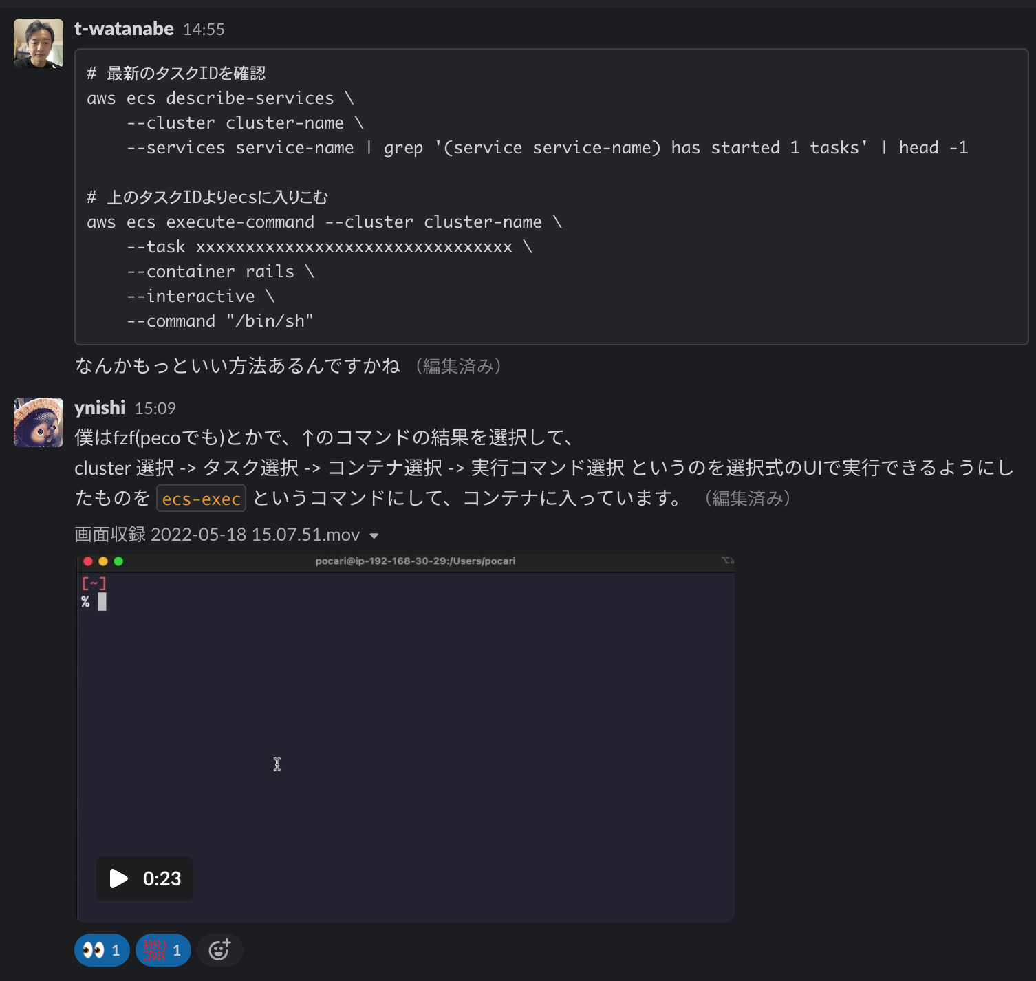 右の画像はAmazon ECSにスムーズにログインできる方法を探しているときに、動画付きで助言をいただいた時のものです。