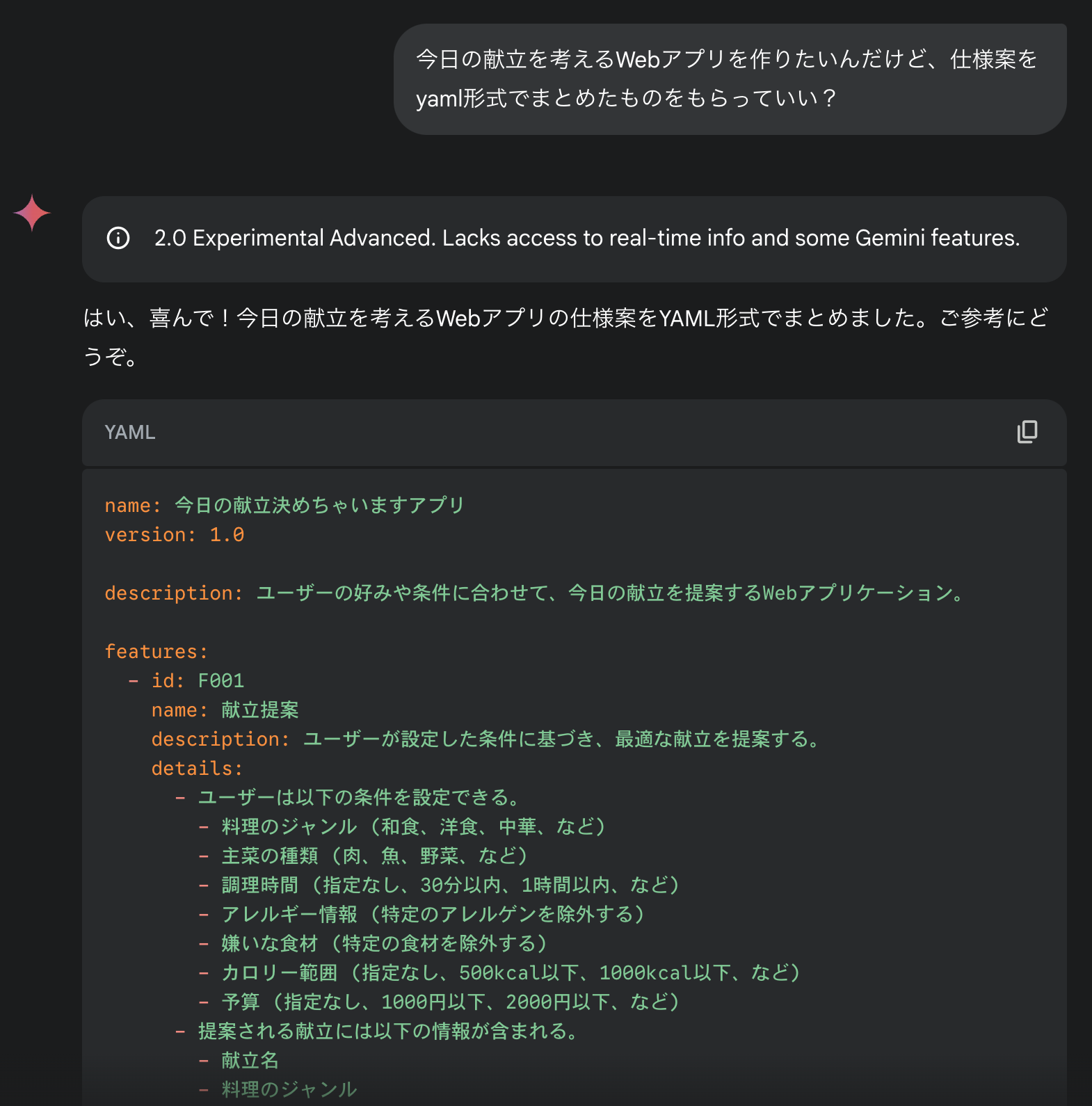 Geminiを使って仕様を整理し、それをReplit Agentに渡すことで、ある程度精度の高い開発が可能になります。