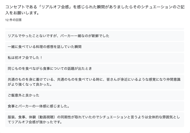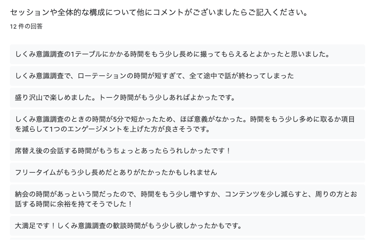 前述した納会コンセプトを意識してかせずか、自ずとリアルを感じる観点でのフィードバックが多かったように感じました。