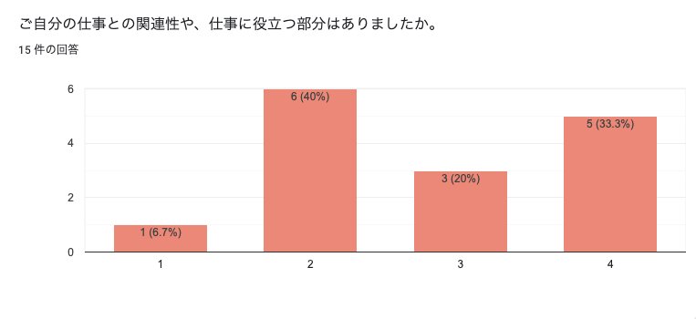 今回は会社の展望などを社長からスピーチしていただく時間を設けたこともあると思いますが、こういうコミュニケーションメインの時間ってどのくらい仕事に役立つのかは興味がありました。